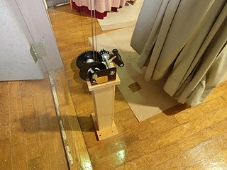 簡単な木組みで長い棒を作る。巻き上げると一応上には収まった。