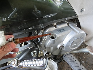 フィラーキャップについているオイルレベルゲージが、検便の採取器みたい。