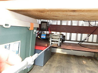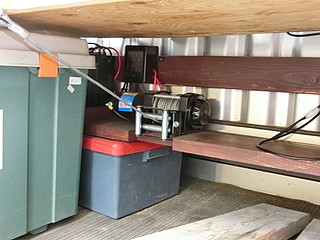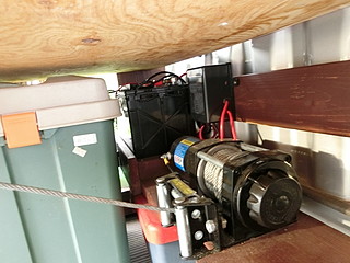 荷台の最前部に枠を組んでウインチを載せる。ウインチは中華製、2tまで引ける割に13000円と安価。