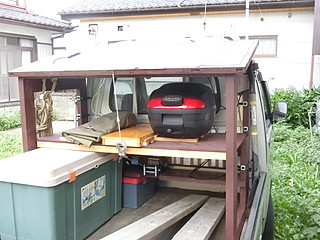 棚には、バイクで使っていた鍵付きボックスも取り付けてみた。