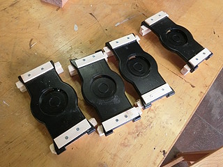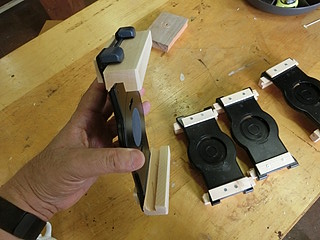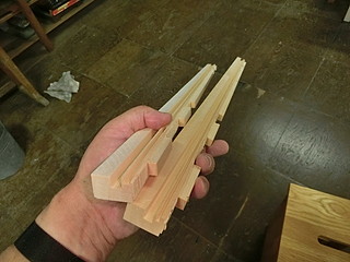 取っ手のようなスペースがあったので、そこを挟み込んで止められるように余り木を加工する。