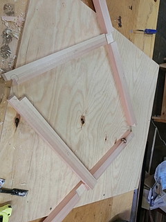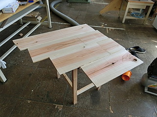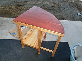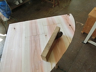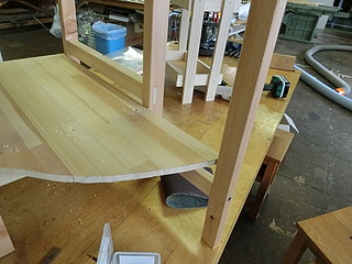 天板は一度構造合板を糸鋸で形を作ってから貼り付けた。