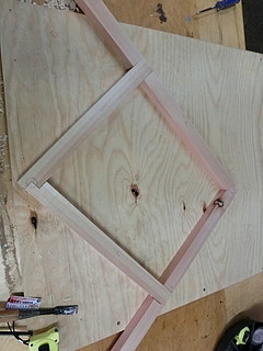 ここで気がつかなかったのだけれど、当初天板の対角線に脚をつけるつもりだったのに内接の四角形で足を組んでしまっていた。