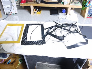 3Dプリンタで間を埋めるスペーサを作る。ABS樹脂を初めて使ったが何度やっても失敗した。結局手持ちのPLA樹脂で一度作成して、形やストッパーの位置を確認する。