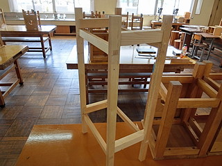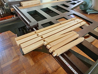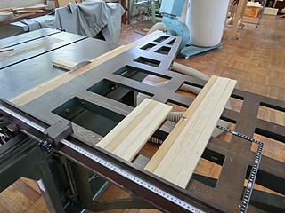 自分の学校には木工機械がないので、違う用事で日曜日に出かけていった中学校の横切り盤と角のみ盤を使って、先日のフローリング施行の残り材でホゾ組部分を作った。