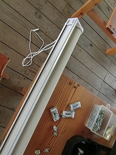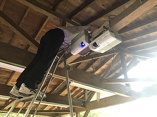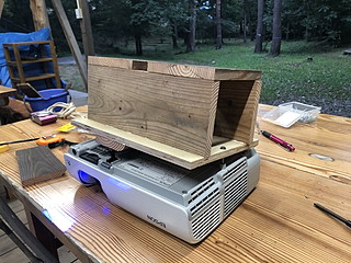 2つ余っていたので、壁方向に加えて天井から机に投影する方向にも取り付けてみた。