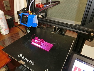 実は左右方向の穴の位置が2mmずれていたので、ステーの厚みを左右とも1mmずつ増やしてもう一度プリントし直した。このステー2つで2時間ほどの出力時間。