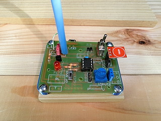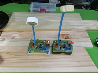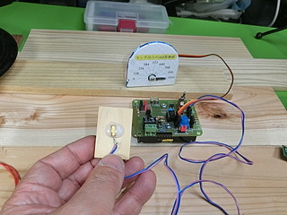 業者さんが各校をまわって見せるためのサンプルをいくつか作る。実験板のようなものと、スタンドライトのようなもの。スタンドライト型はサブセットで、しきい値を決めたらPICにプログラムを書き込んでから差し替えることになる。
