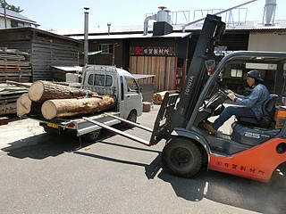 本来は製品にできないので、細かく砕いてウッドチップにするか燃やしてしまうしかないのだけれど、乾燥機で熱を加えれば寄生虫は死滅するので、近くの製材所にお願いする。
