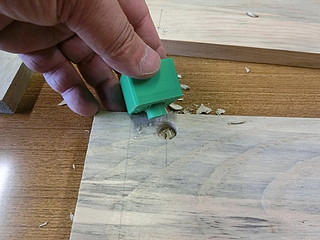 中学校の木工室を借りて、ほぞ穴とほぞを木工機械で加工して校長室に持ち込む。