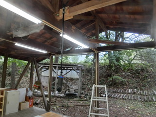 大勢の参観者が訪れる公開授業に際して、森の教室から中継出来るようカメラを設置した。