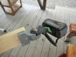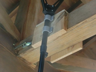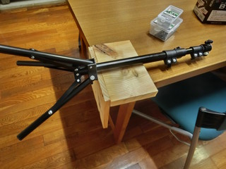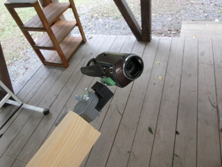 カメラを取り付けた状態、これで上の門形固定枠に取り付けた。