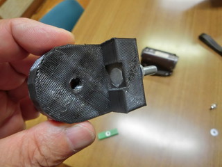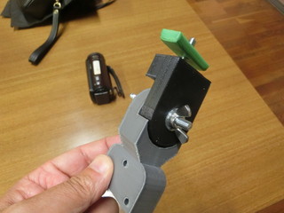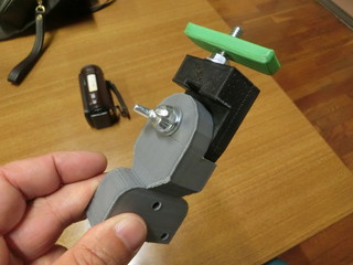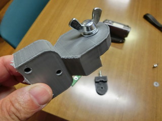 こちらも3Dプリンタで固定具を出力。角度を変えられるように設計する。