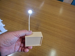 ・光センサを覆って暗くした状態でスイッチオンだと、暗くて人の動きを感知すると数十秒ライトが点灯。(赤色LEDは常時点灯でモードの切り替えを示す)
