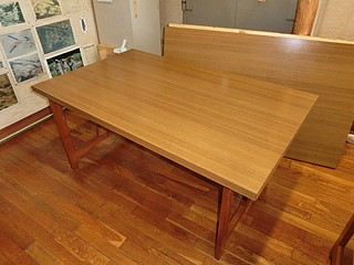 3日くらいかけて全ての塗装が終わり、前の机の天板と差し替える。コーススレッドで止まっていただけなので簡単に変えることができた。