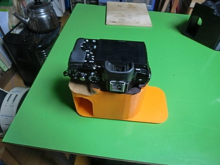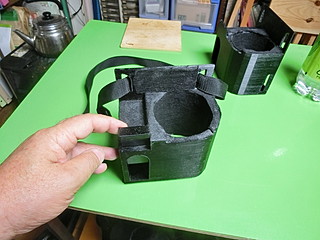 そこからこのカメラ枠だけでカメラを持ち歩くようにしたら便利かと考え、カーボンファイバー入りの黒フィラメントで作成してみる。