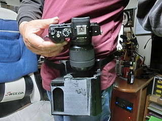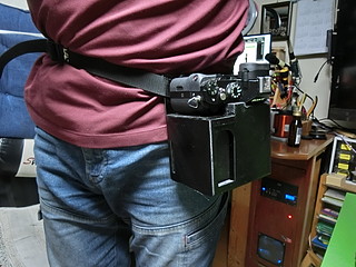 このような感じでバッグから取り出してベルトで身体に固定することで、撮影時に便利に使っている。