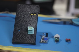 3Dプリンタでハウジングを作って、LEDとCDSが手前の位置に一直線となるようにした。